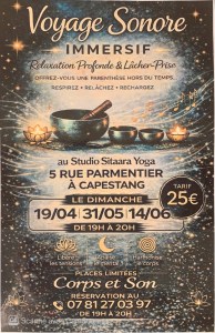 - Atelier « voyage sonore immersif » les 19/04/2026, 31/05/2026 et 14/06/2026 à19h