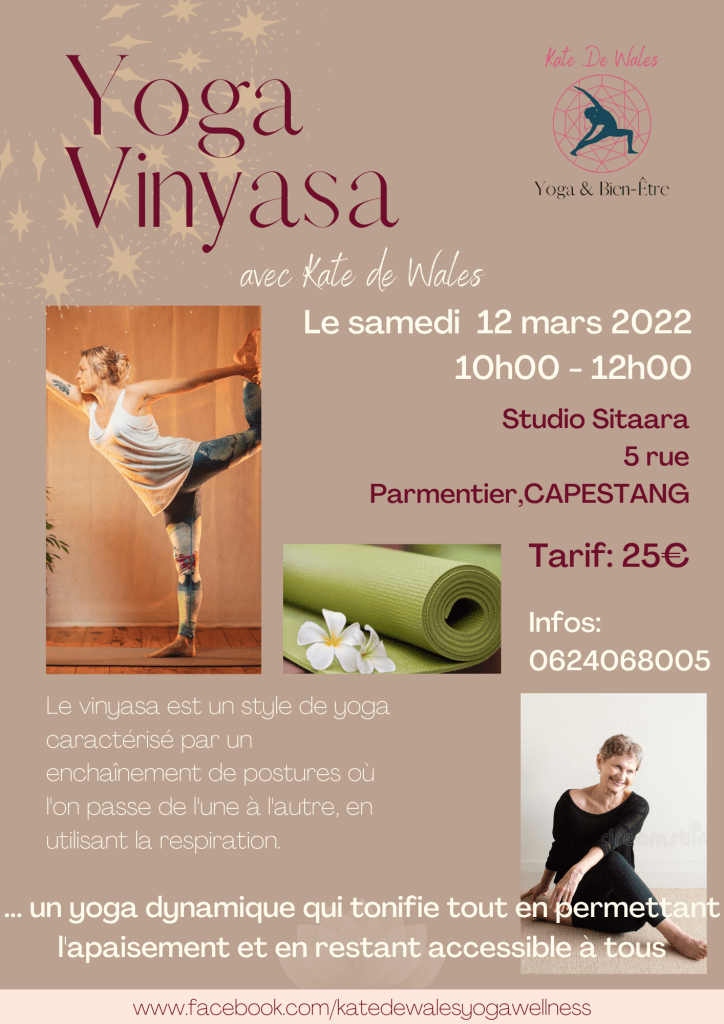 Atelier de Yoga Vinyasa le 12/03/2022 de 10h à 12h Publié parstudiositaaracapestang2 mars 20222 mars 2022Publié dansEvenement Atelier de Yin Vinyasa animé par Kate le 12 Mars 2022 de 10h à 12h Lien de l’événement Facebook : par ici Partager : Cliquer pour partager sur X(ouvre dans une nouvelle fenêtre) X Cliquez pour partager sur Facebook(ouvre dans une nouvelle fenêtre) Facebook J’aime chargement…